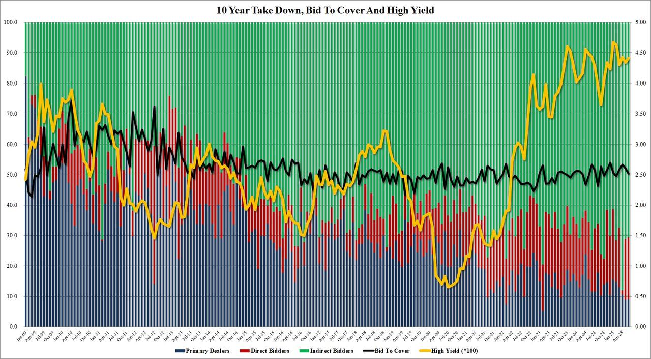 作为承接所有未购买供应的“接盘侠”,一级交易商(Primary dealers)本轮获配比例为9%,略高于上月的8.9%,为有记录以来的第三低,凸显实际需求强劲。